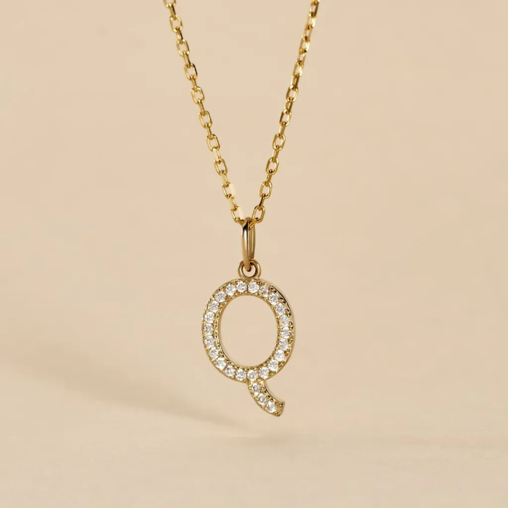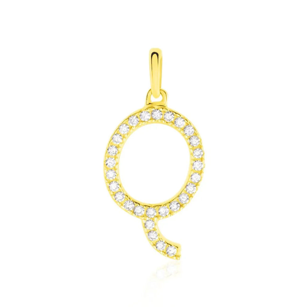 Pendentif Or Jaune 375/1000 Lettre Q Oxydes De Zirconium