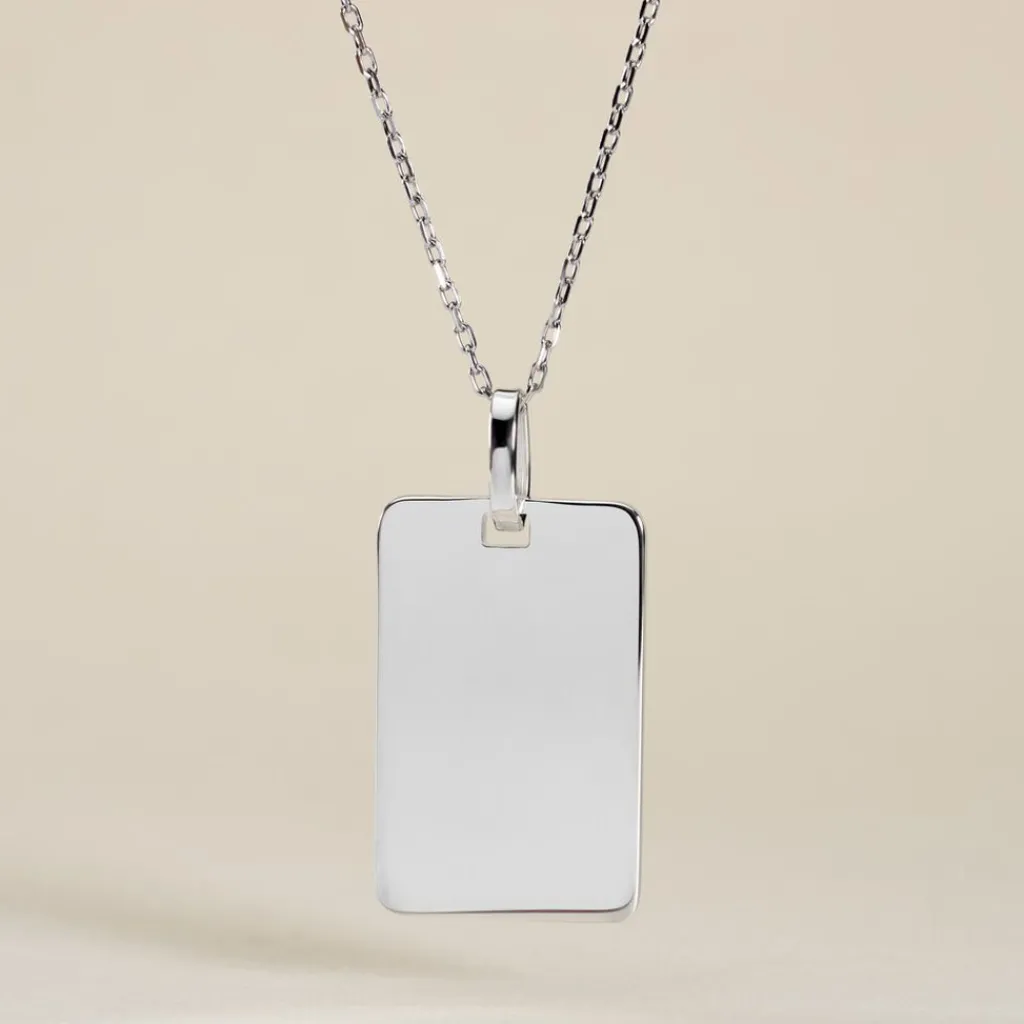Pendentif Argent Blanc 925/1000 Plaque Rectangle 16x26mm