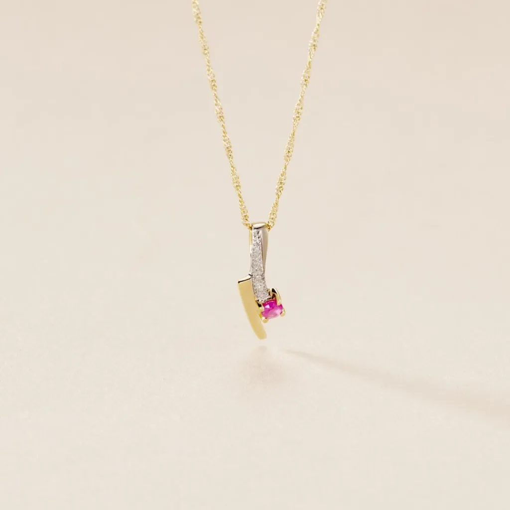 Pendentif Or Jaune 375/1000 Lisse Rubis 0.16ct Serti 4 Griffes