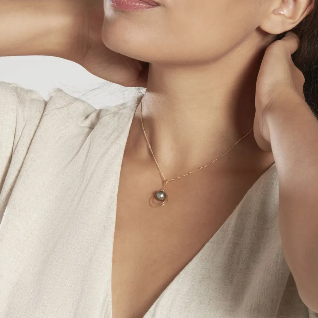 Pendentif Or Jaune 375/1000 Semi-baroque Ajoure Perle De Culture De Tahiti Noire 8.5/9mm
