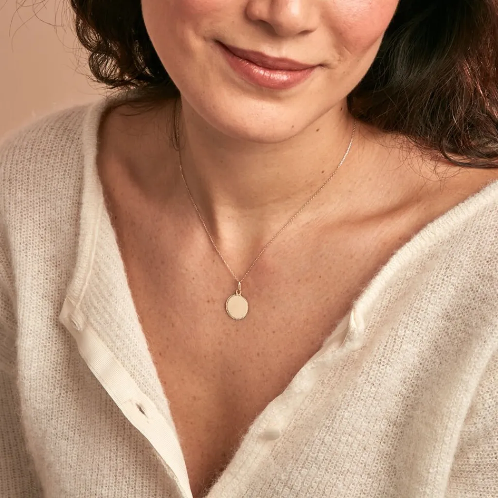 Pendentif Or Jaune 375/1000 Pastille Lisse Gravable Diametre 15mm