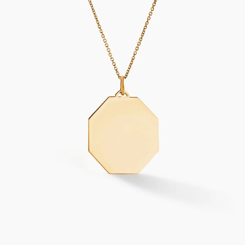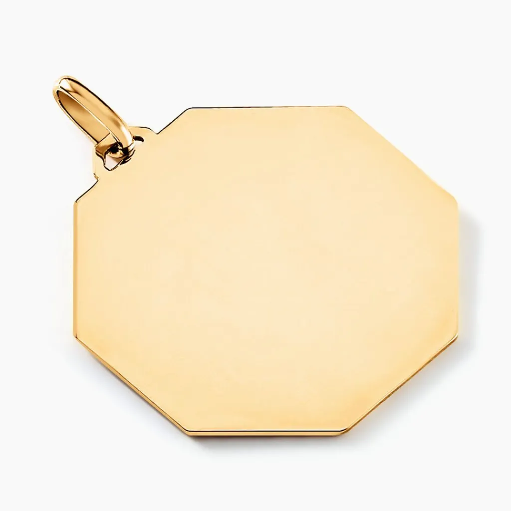 Pendentif Or Jaune 375/1000 Plaque Octogonale Gravable 20mm