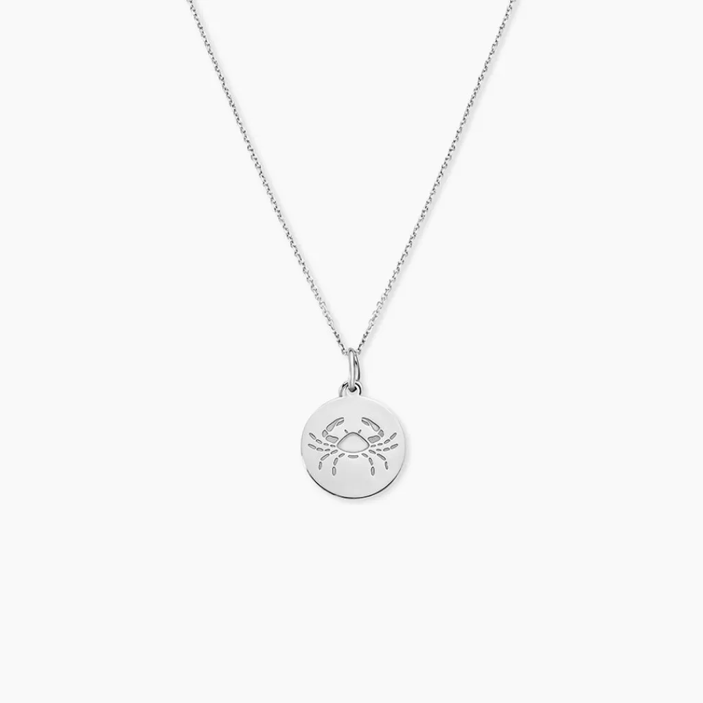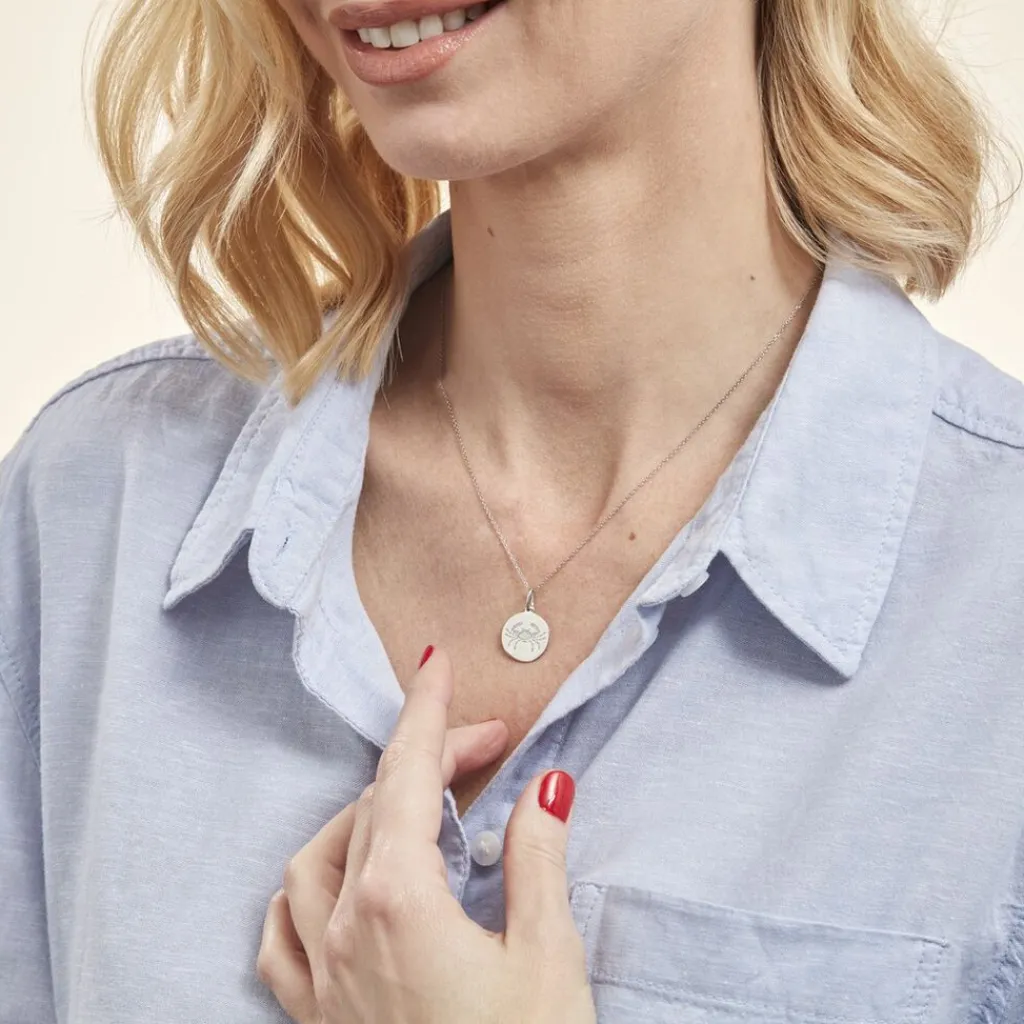 Pendentif Argent Blanc 925/1000 Medaille Ronde Motif Cancer