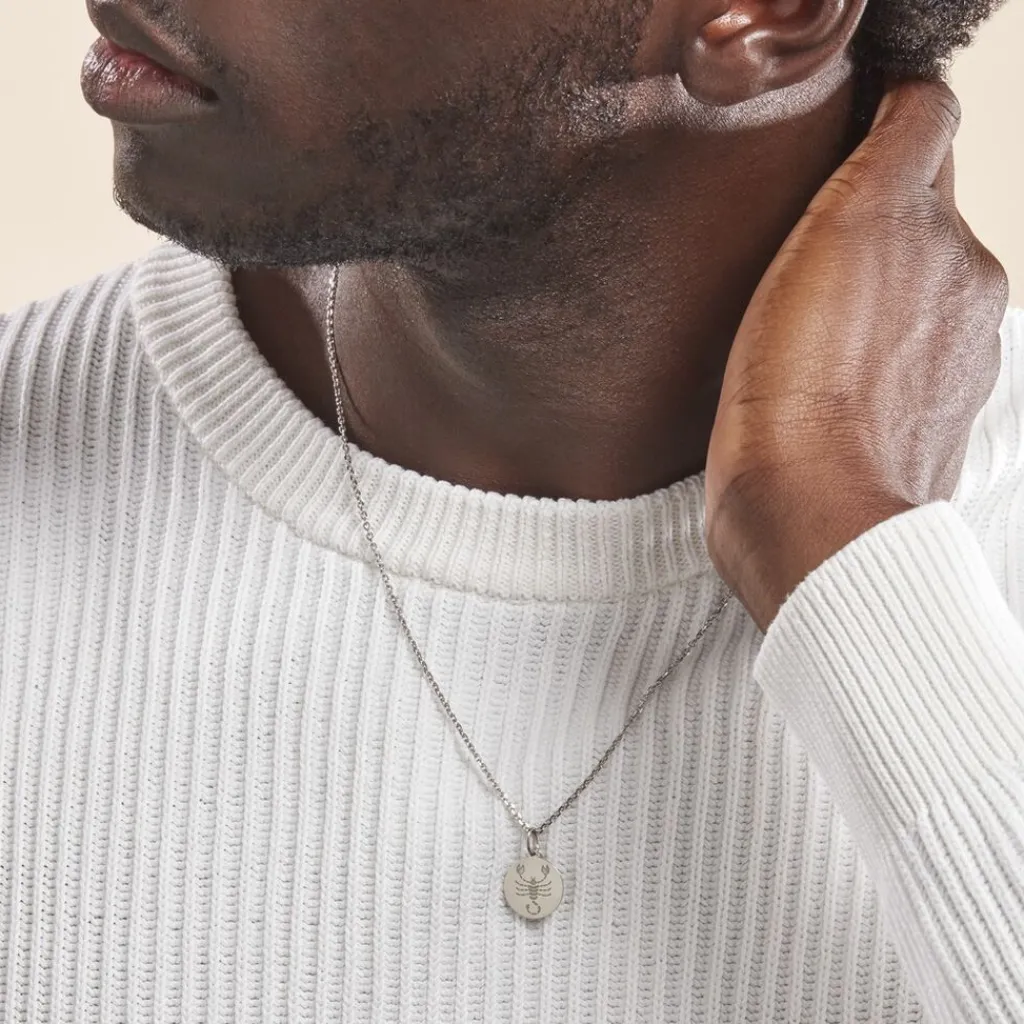 Pendentif Argent Blanc 925/1000 Medaille Ronde Motif Scorpion