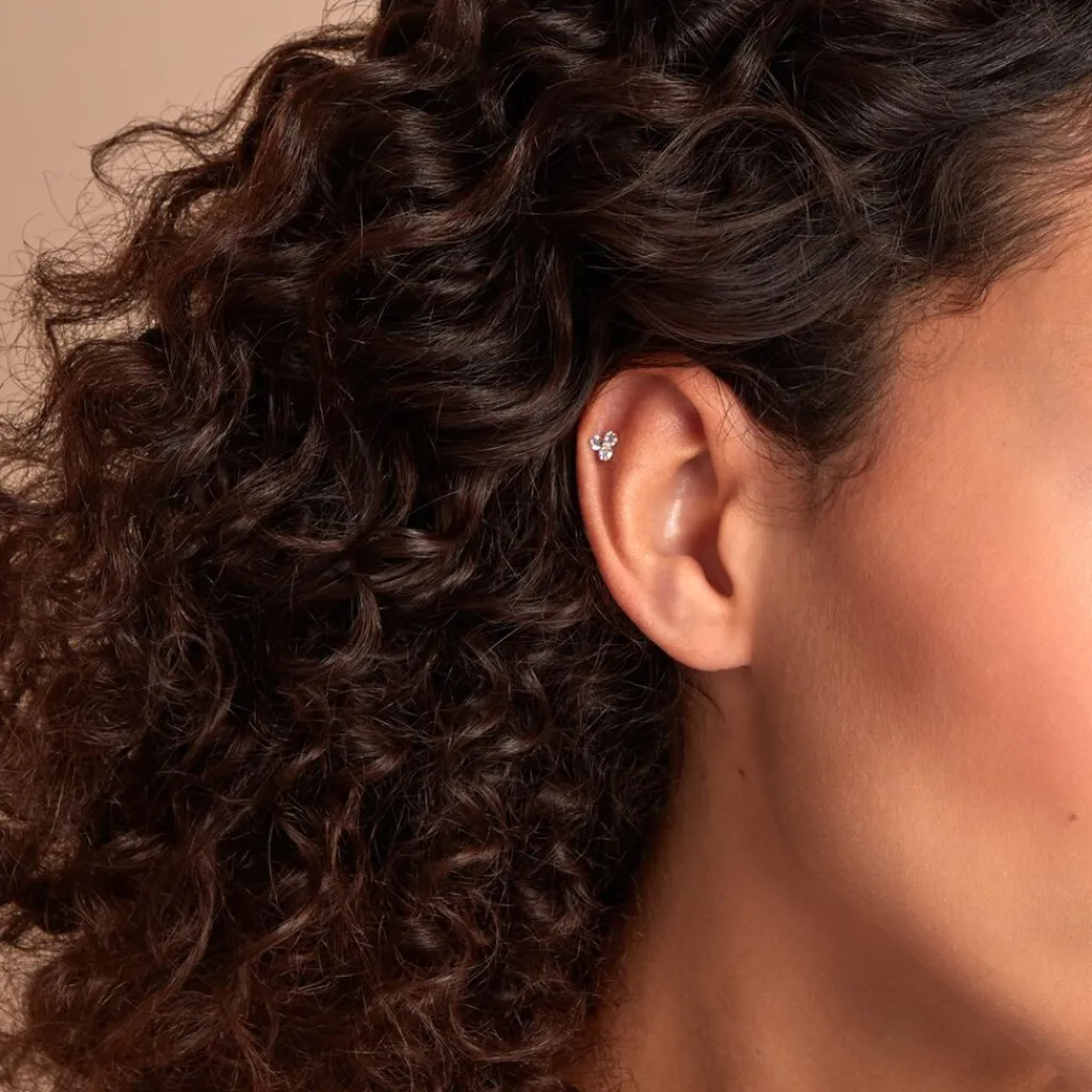 Piercing D’oreille Or Jaune 375/1000 Fleur Oxyde De Zironium 10mm