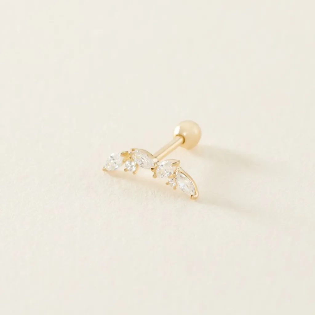 Piercing D’oreille Or Jaune 375/1000 Barette Multi Navettes Oxydes De Zirconium