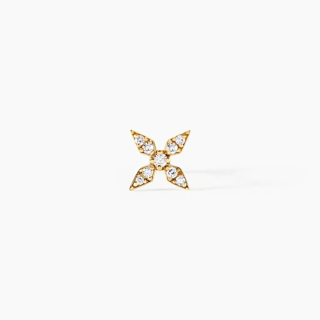 Piercing D’oreille Or Jaune 375/1000 Fleur Pavage Diamants