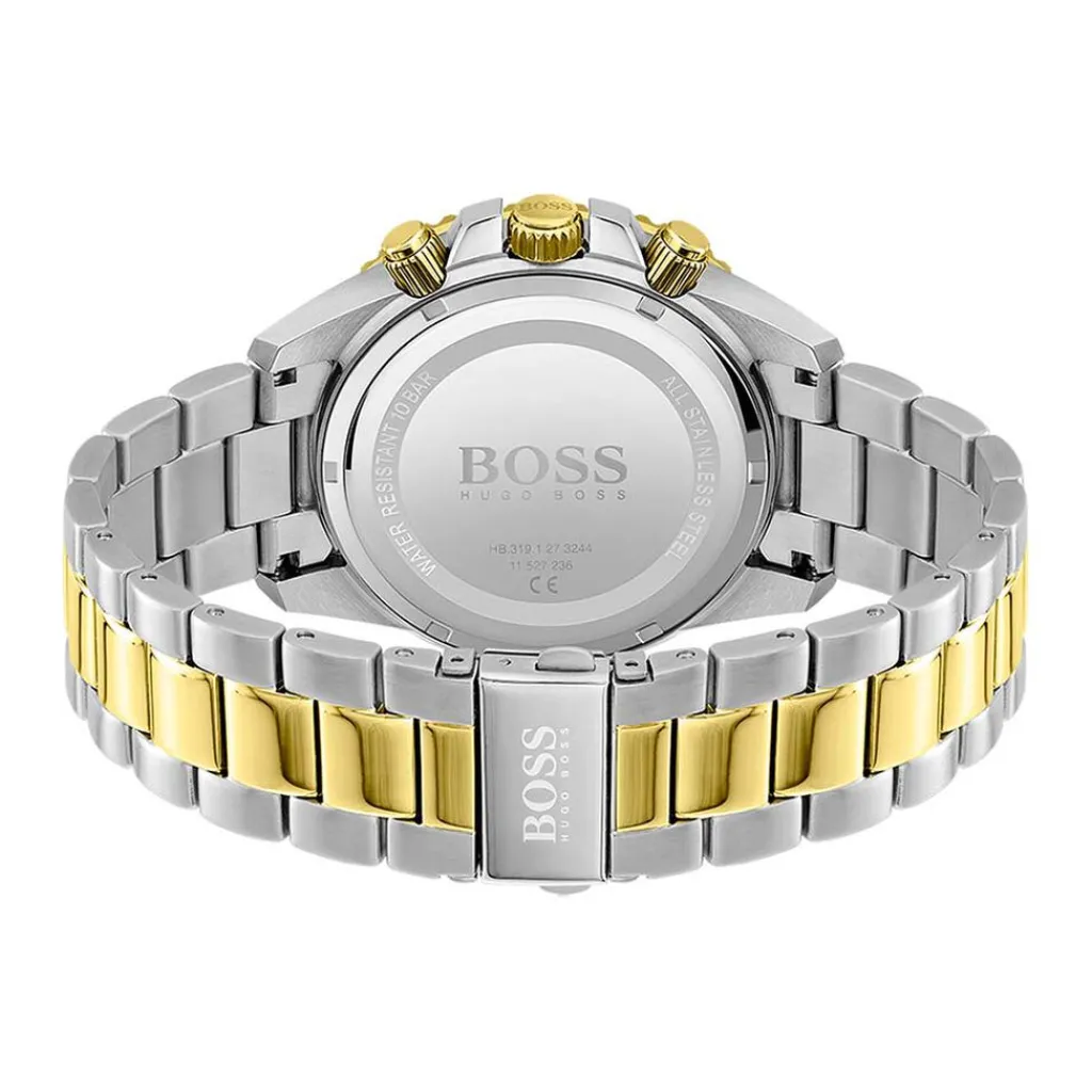 Montre Boss Admiral Acier Argenté Ronde Quartz Chronographe 45mm Fond Noir Bracelet Acier Argenté Et Doré 1513908