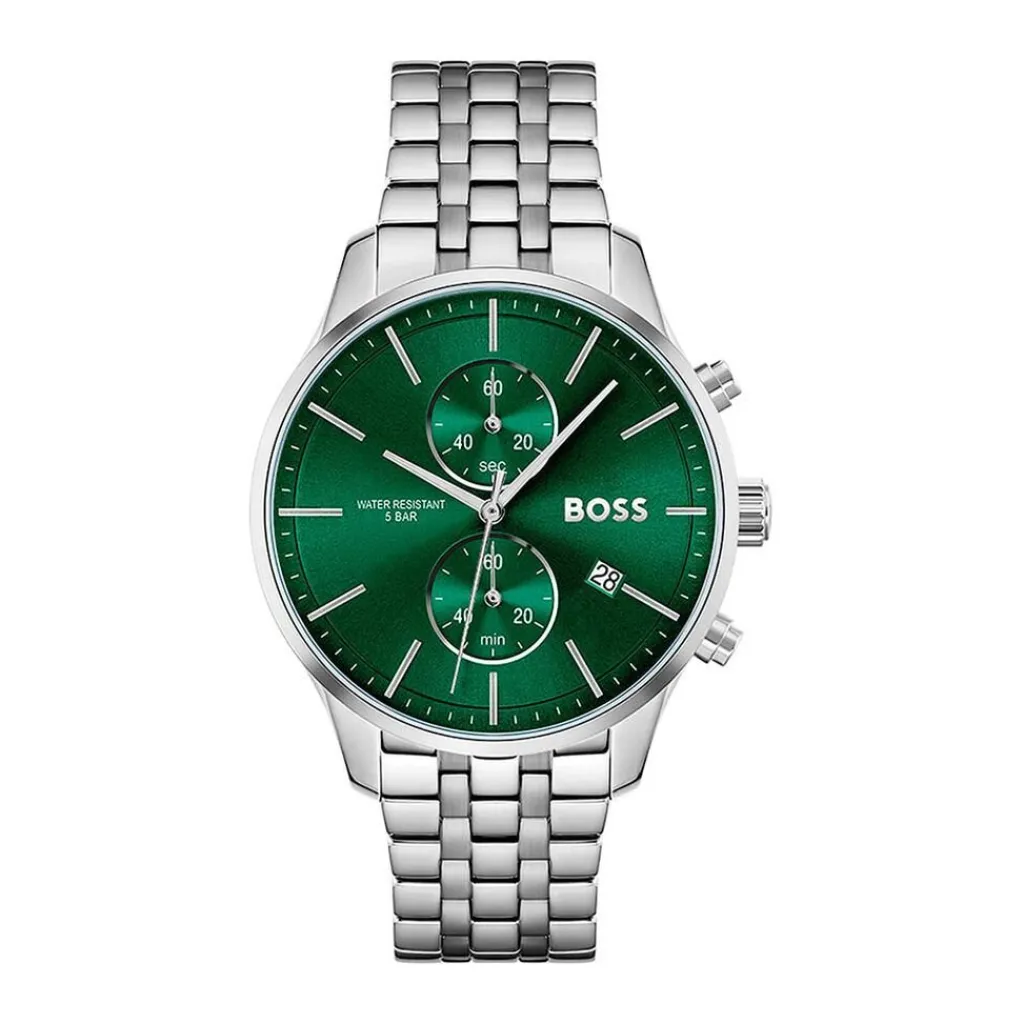 Montre Boss Associate Acier Ronde Quartz Chronographe 42mm Fond Vert Bracelet Acier 1513975