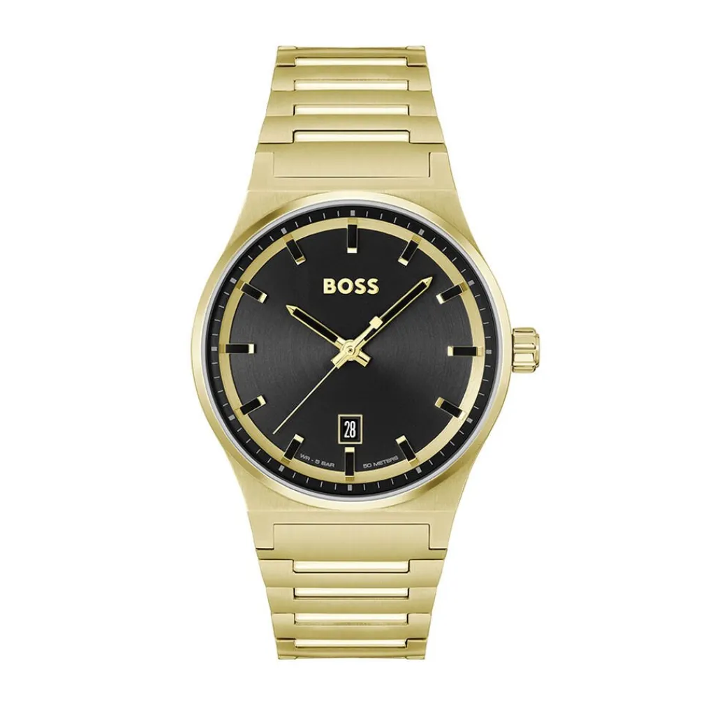 Montre Boss Candor Acier Dore Rond Quartz 41mm Fond Noir Bracelet Acier Dore 1514077