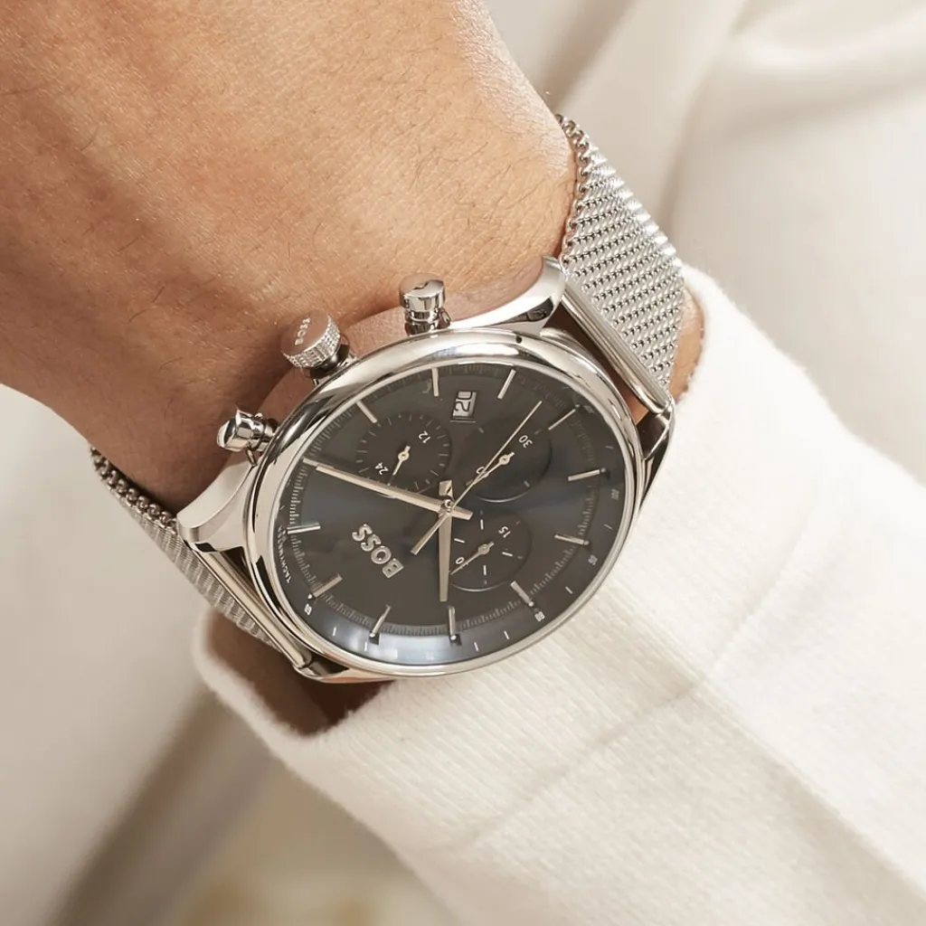 Montre Boss Gregor Acier Argenté Ronde Quartz Chronographe 45mm Fond Bleu Bracelet Acier Argenté 1514052
