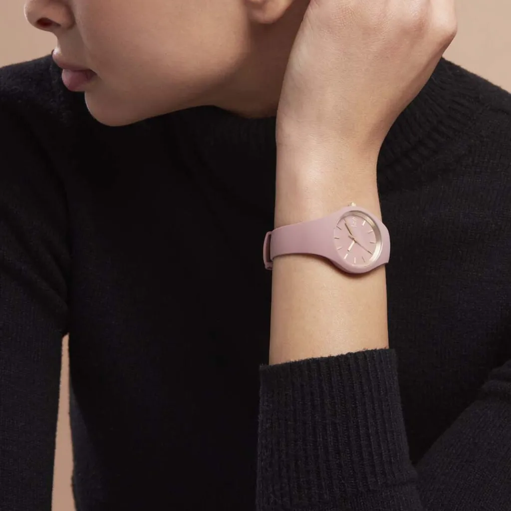 Montre Ice Watch Ice Glam Brushed Acier Rose Ronde Quartz 34mm Fond Rose Bracelet Silicone Rose 019524
