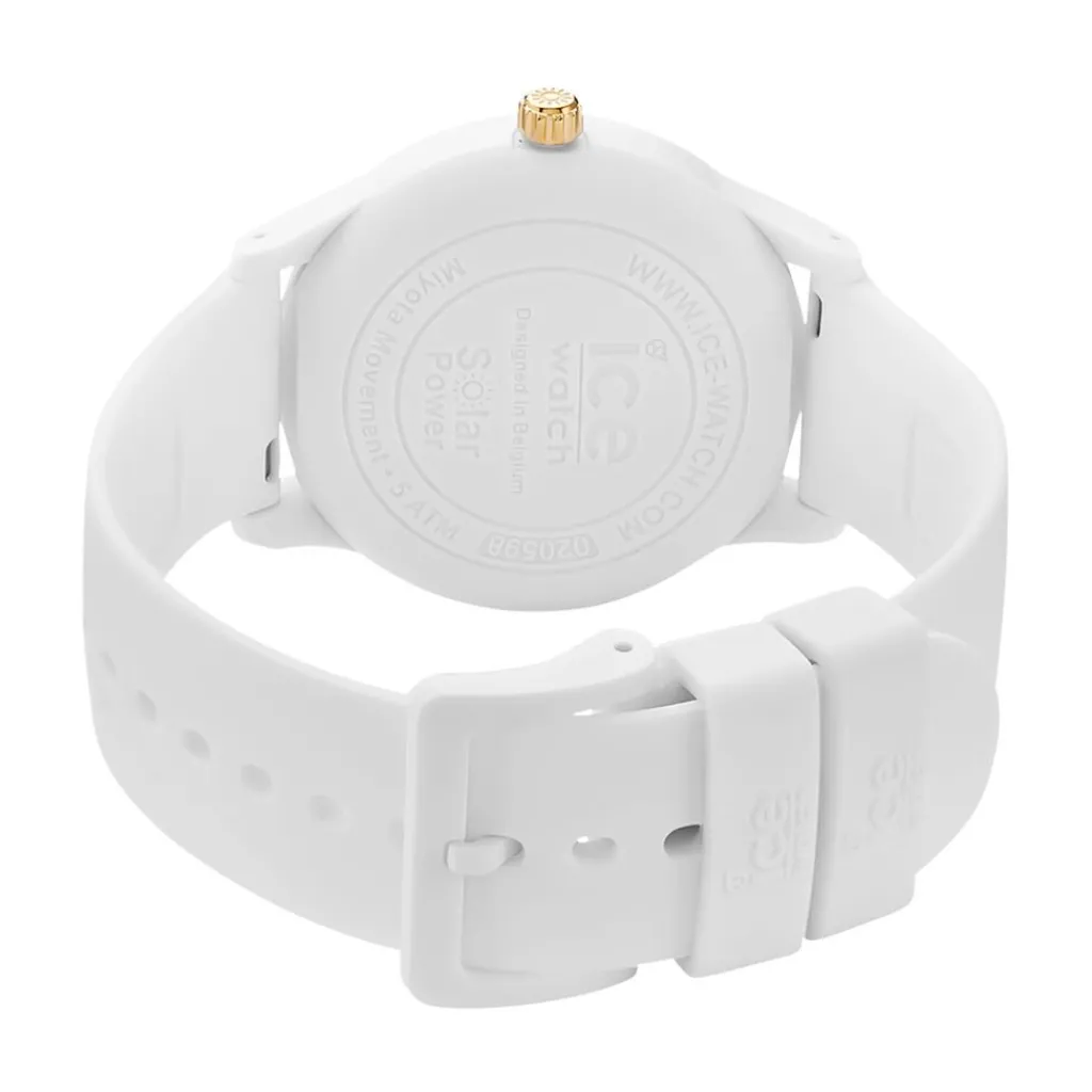 Montre Ice Watch Solar Power Plastique Blanc Ronde Quartz 40mm Fond Blanc Bracelet Silicone Blanc 020598