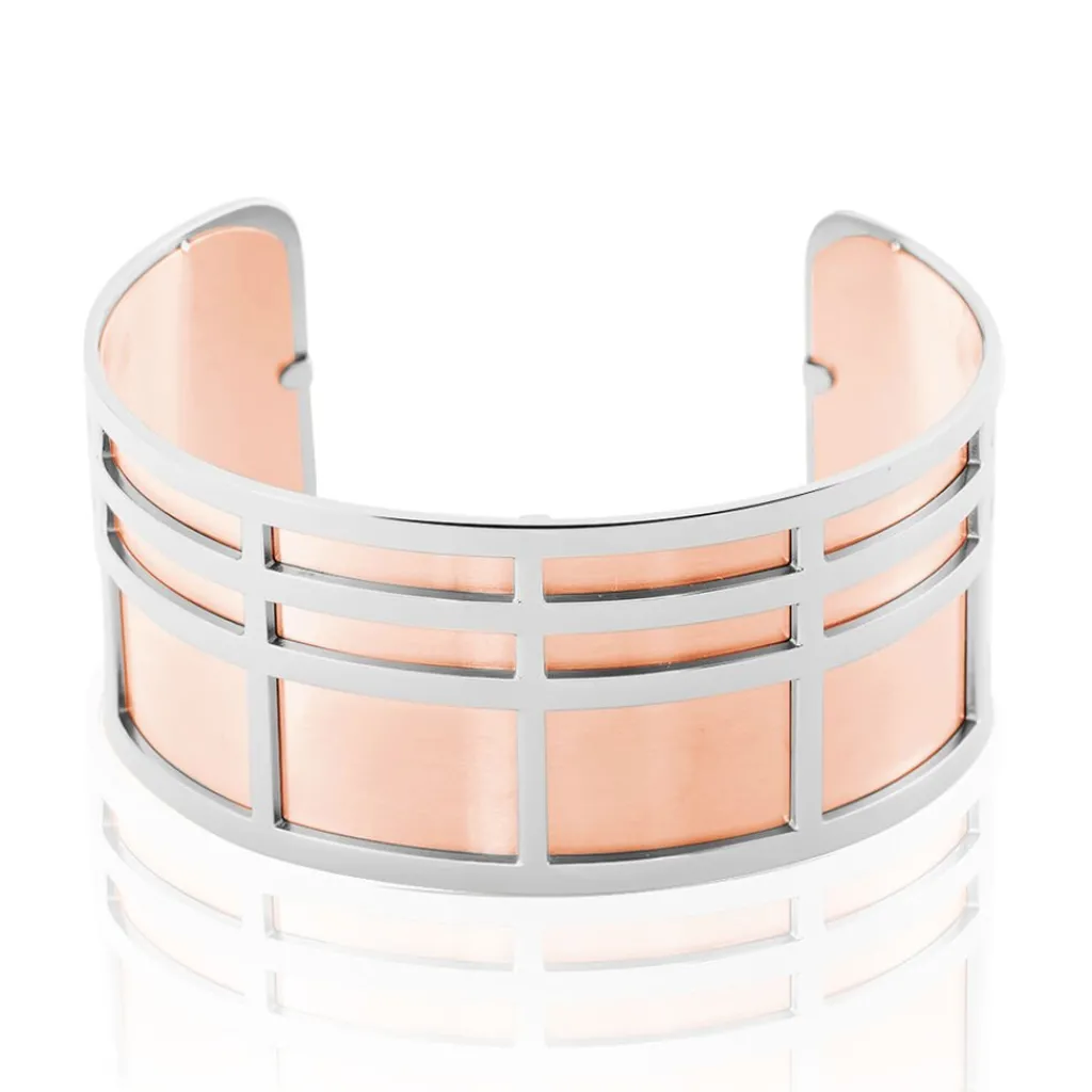 Jonc Acier Imagine Ajoure Motifs Rectangulaires Plaque Acier Rose