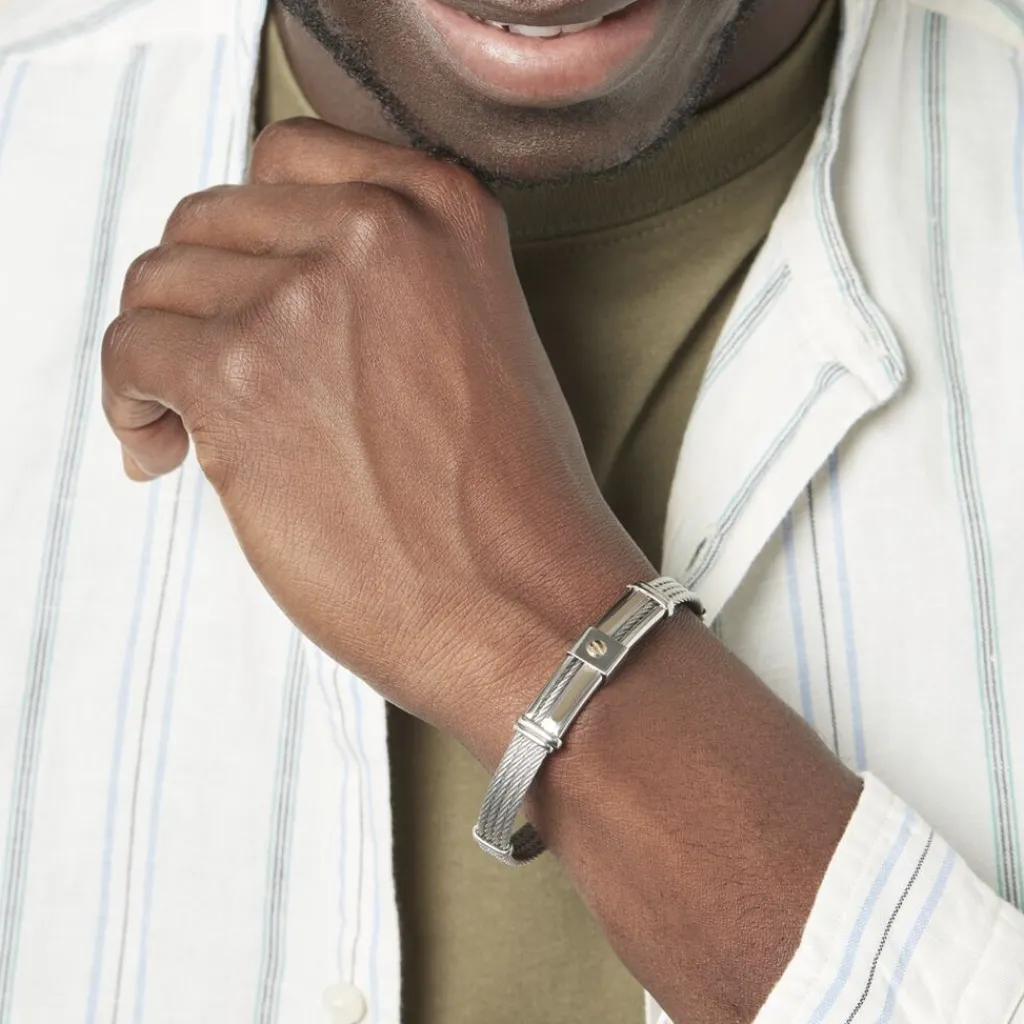 Bracelet Acier + Cable + Decor Or 20.5/21cm