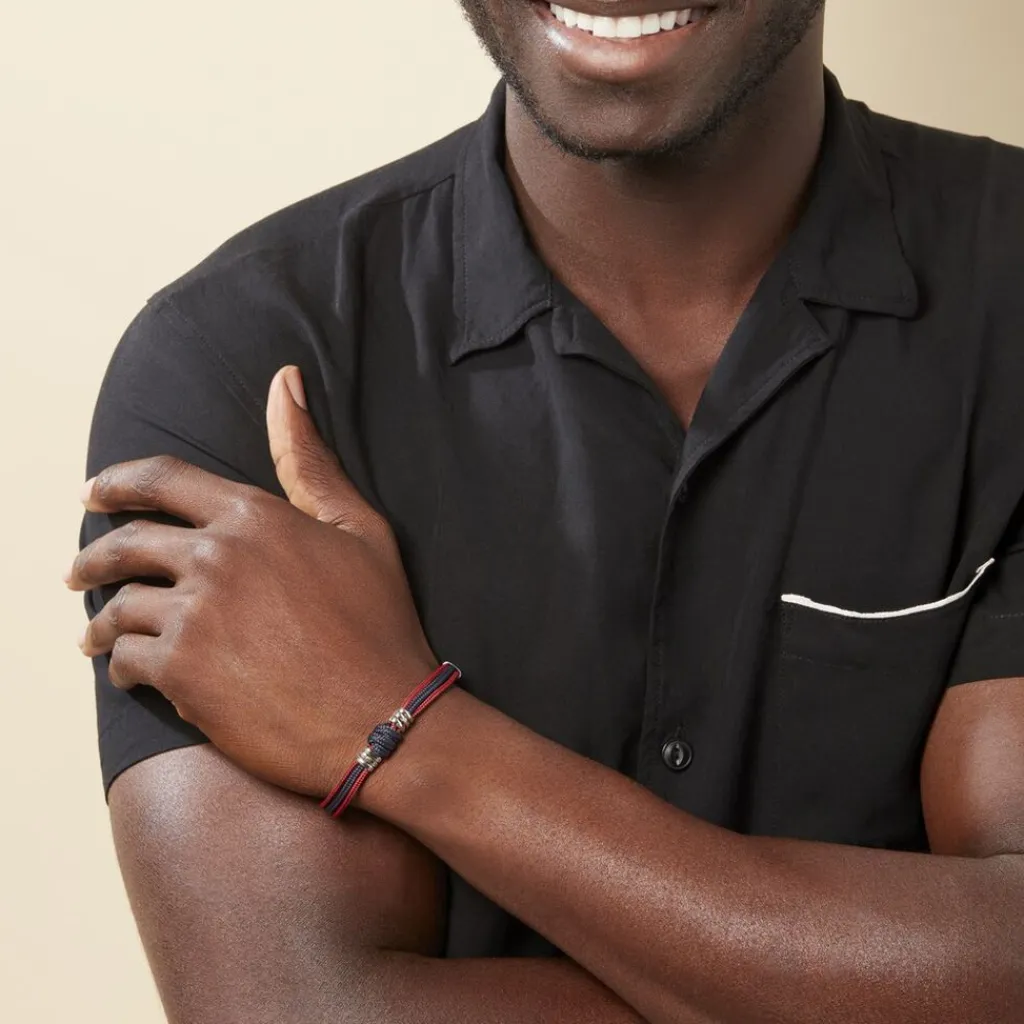 Bracelet Acier Cordons Marine Rouge 21cm