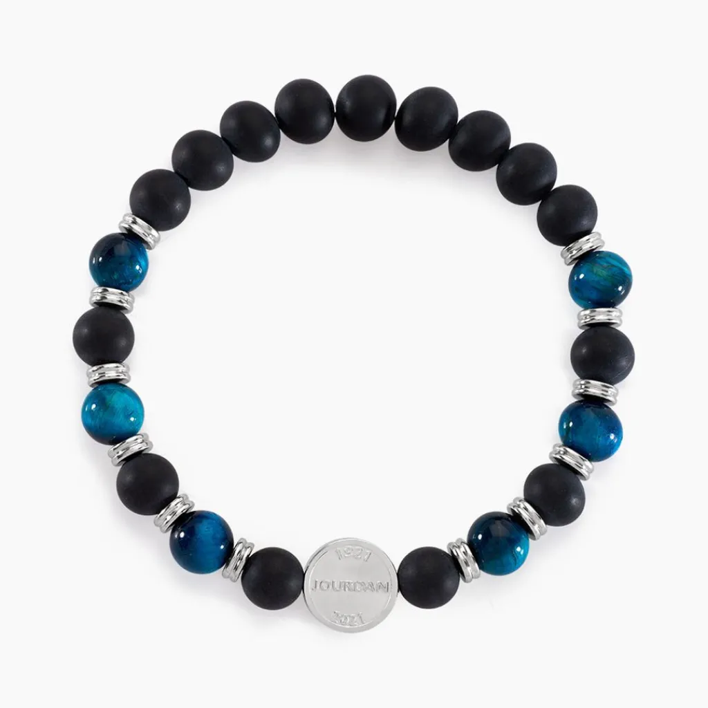 Bracelet Acier Blanc Perles 艙il De Tigre Vert Onyx 21cm Jh100001b