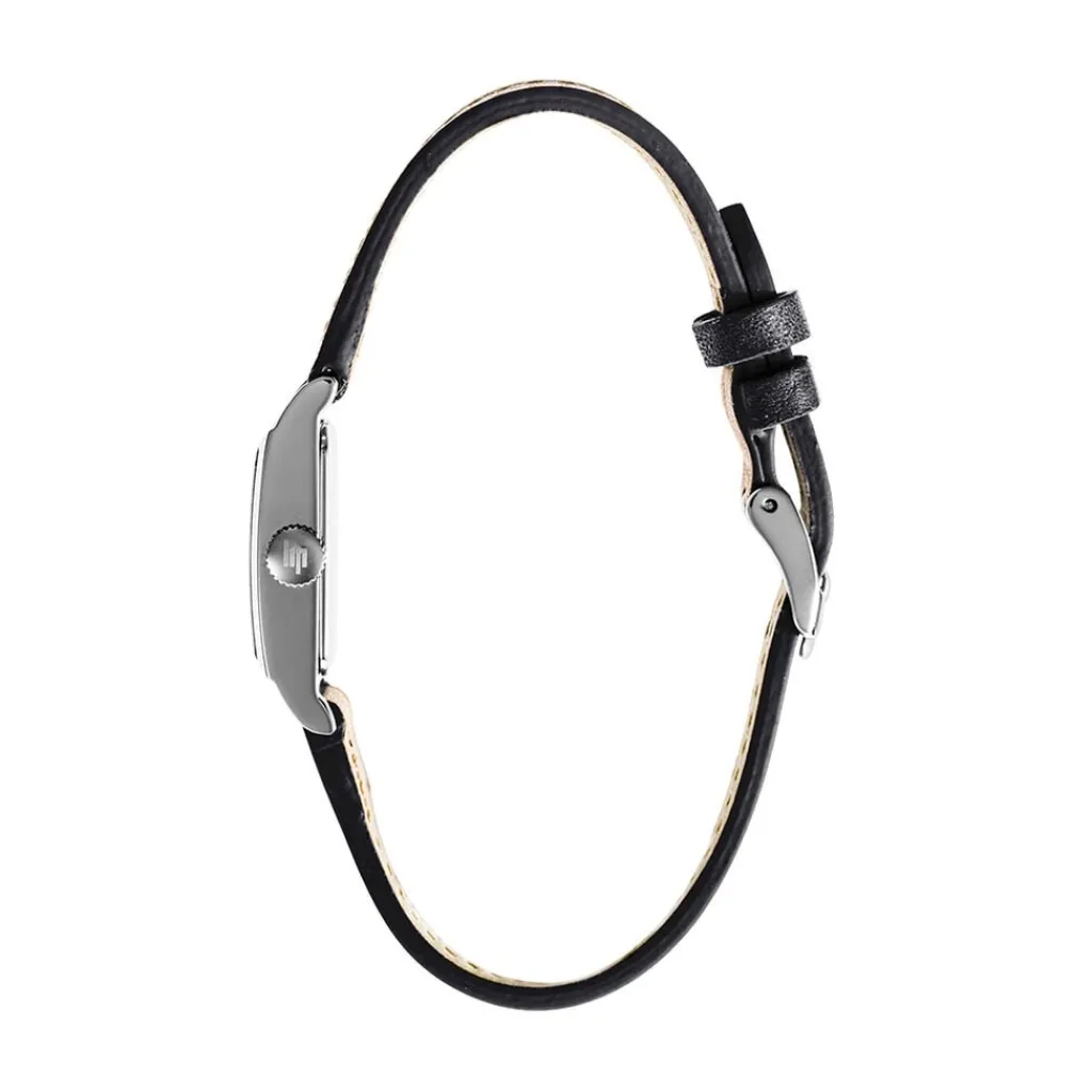 Montre Lip Churchill T13 Acier Argente Rectangulaire Quartz 13mmx29mm Fond Argente Bracelet Cuir De Vache Noir 671931