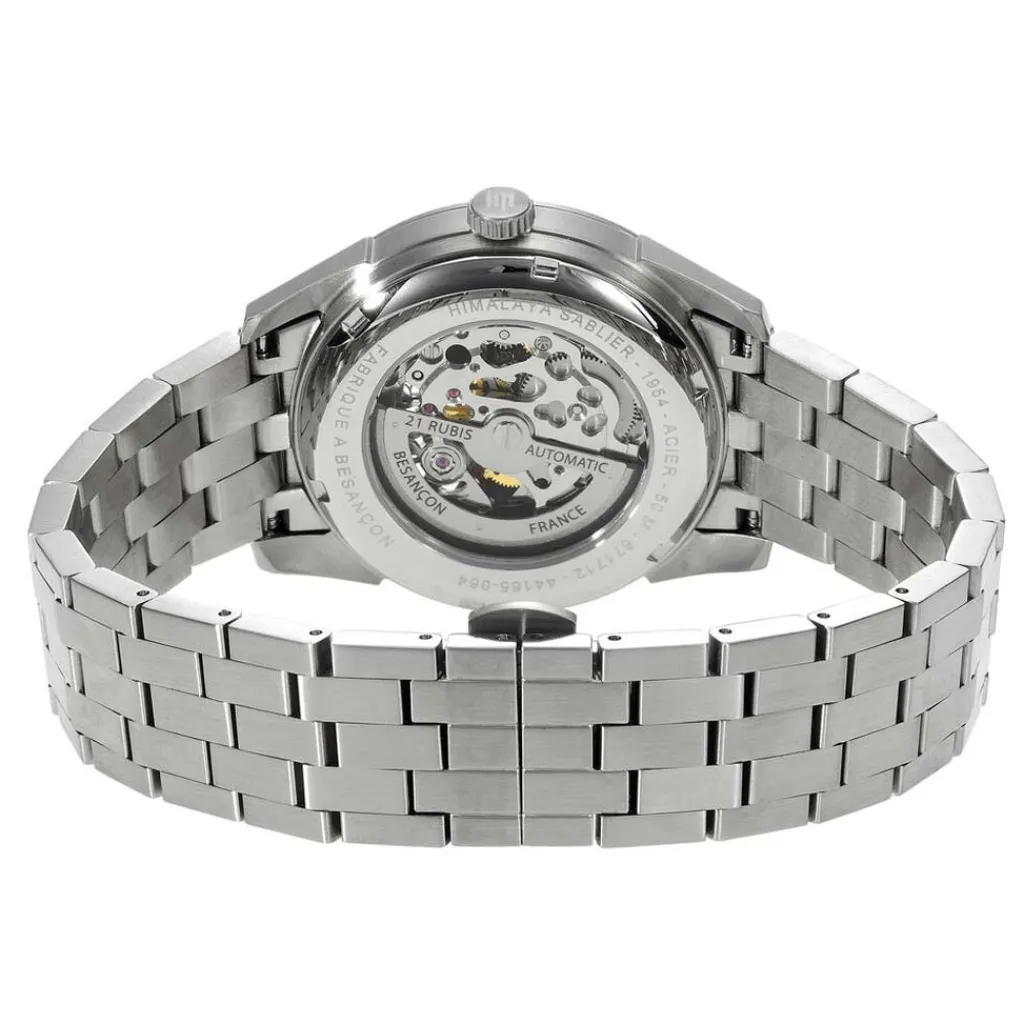 Montre Lip Himalaya Sablier Acier Argente Ronde Automatique Chronographe 40mm Fond Bleu Bracelet Acier Argente 671712