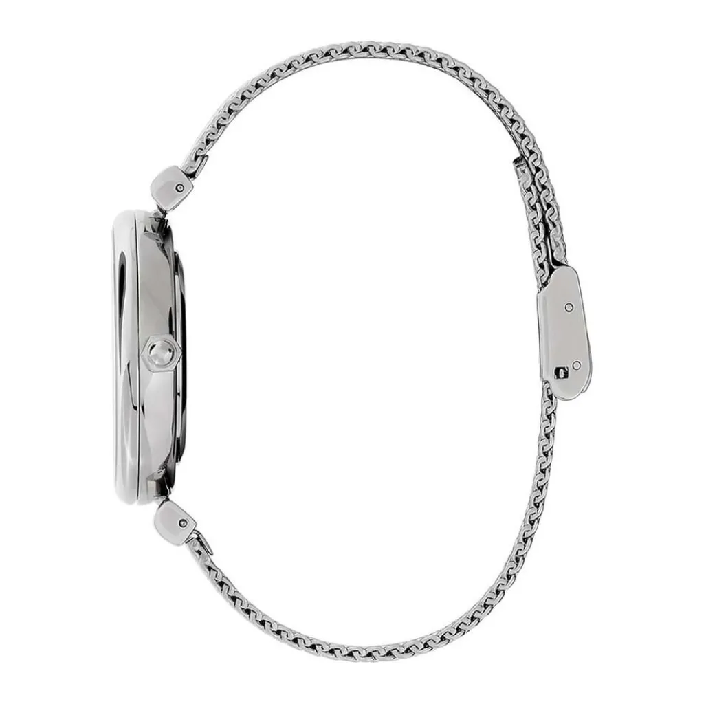Montre Olivia Burton Minima Bee Acier Blanc Ronde Quartz 36mm Fond Rose Bracelet Milanais Acier Blanc 24000095