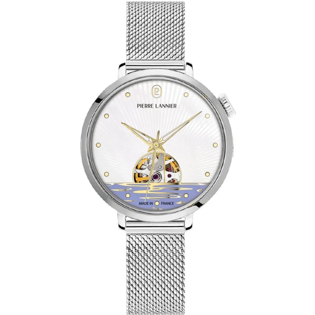 Montre Pierre Lannier Australe Acier Inoxydable Argenté Automatique Ronde 35Mm Fond Nacre Coucher De Soleil Coeur Ouvert Bracelet Milanais Acier Inoxydable Argenté 150H691