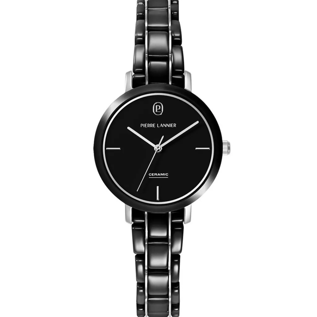 Montre Pierre Lannier Ceramic Acier Inoxydable Bicolore Argente/Noir Quartz Ronde 30Mm Fond Noir Bracelet Céramique Bicolore Argente/Noir 024L839