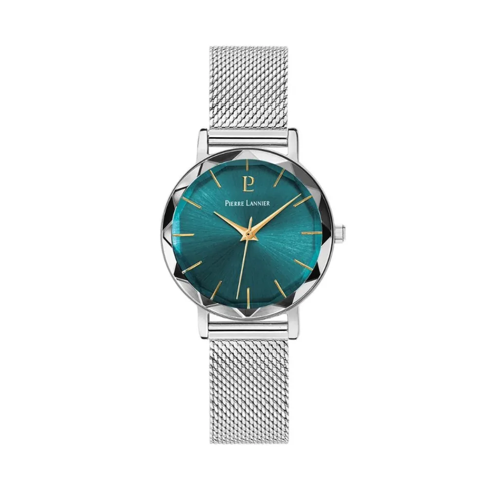 Montre Pierre Lannier Multiples Acier Argente Ronde Quartz 30mm Fond Vert Bracelet Acier Inoxydable Argente Milanais 009m671