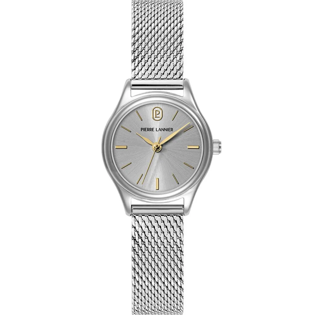 Montre Pierre Lannier Pya Acier Inoxydable Argenté Quartz Ronde 26Mm Fond Argenté Bracelet Milanais Acier Inoxydable Argenté 020L621