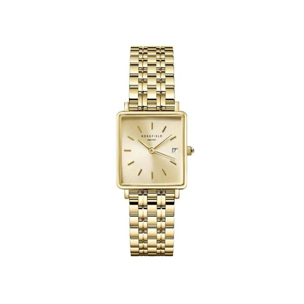 Montre Rosefield Boxy Xs Acier Doré Carré Quartz 22×24 Mm Fond Champagne Bracelet Acier Doré Qcgsg-q048