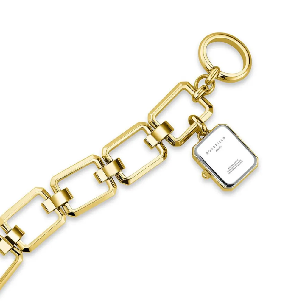 Montre Rosefield Studio Acier Doré Rectangle Quartz 18.5 X 15mm Fond Blanc Bracelet Acier Doré Swgsg-o52