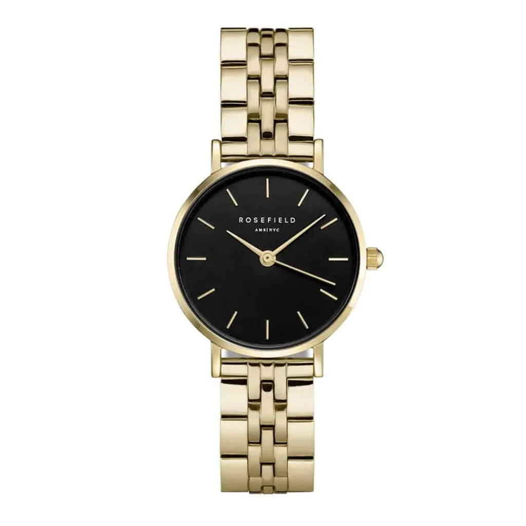 Montre Rosefield Small Edit Acier Doré Carré Quartz 26mm Fond Noir Bracelet Acier Doré 26bsg-268