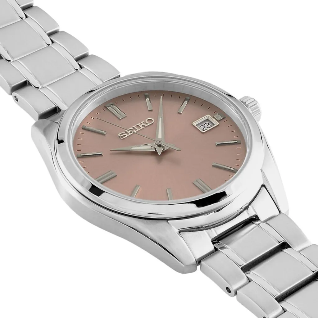 Montre Seiko Classique Acier Argenté Ronde Quartz 40.2mm Fond Rose Bracelet Acier Argenté 10atm Sur523p1