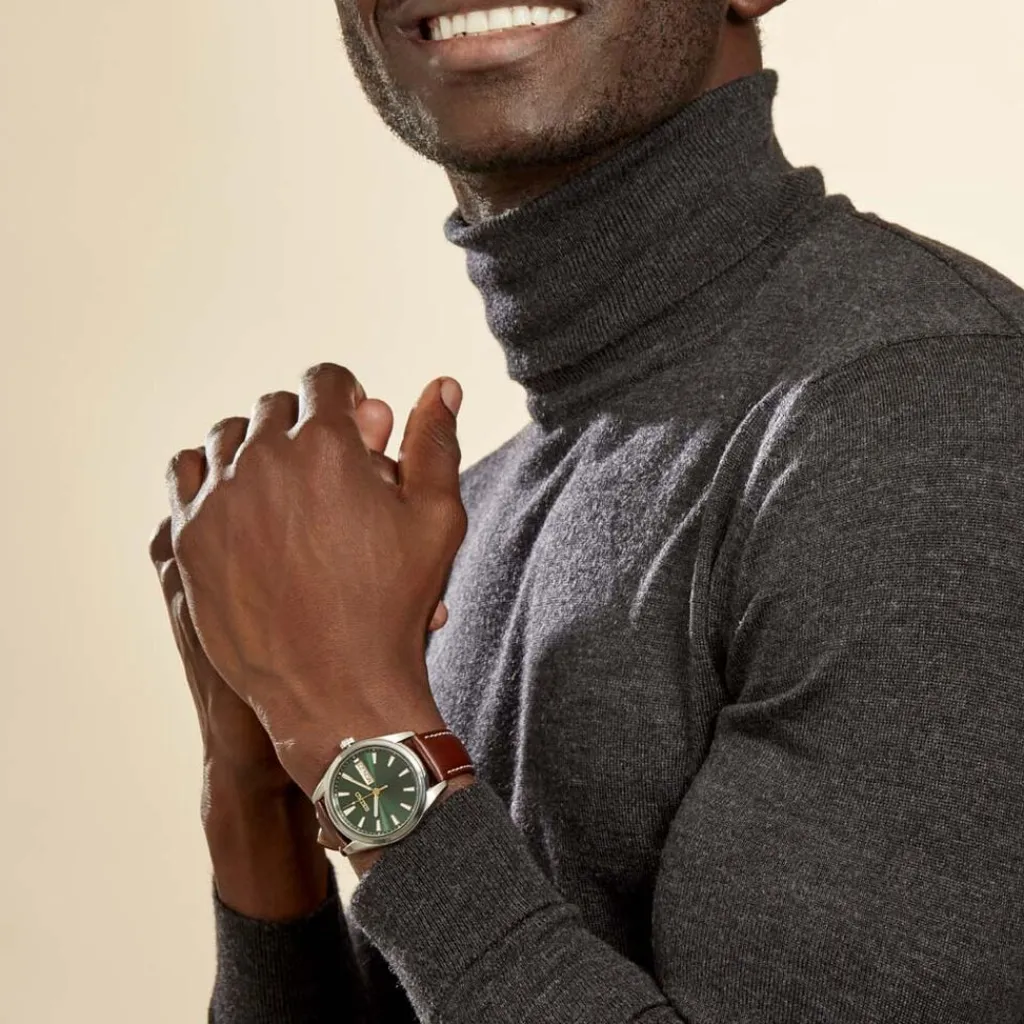 Montre Seiko Classique Acier Blanc Ronde Quartz 40.2mm Fond Vert Foncé Bracelet Cuir Marron Foncé Sur449p1