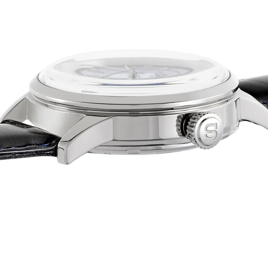 Montre Seiko Presage Acier Blanc Ronde Automatique 40mm Fond Bleu Bracelet Cuir Noir Ssa343j1