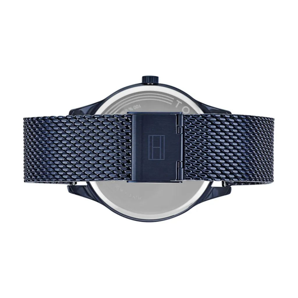 Montre Tommy Hilfiger Damon Acier Bleu Ronde Quartz 44mm Fond Bleu Bracelet Acier Bleu Maille Milanaise 1791421