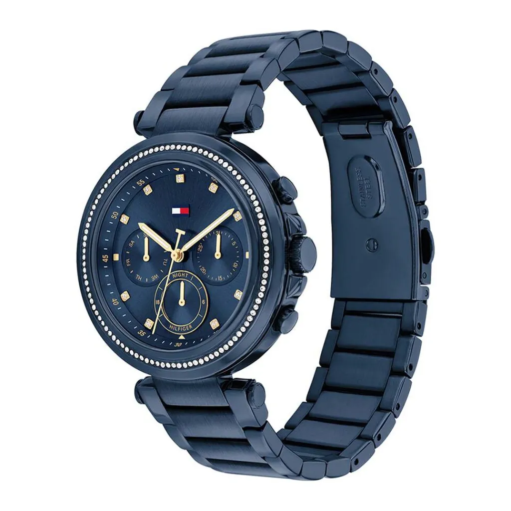 Montre Tommy Hilfiger Emily Acier Bleu Ronde Quartz Multifonctions 38mm Lunette Strassee Fond Bleu Bracelet Bleu 1782704