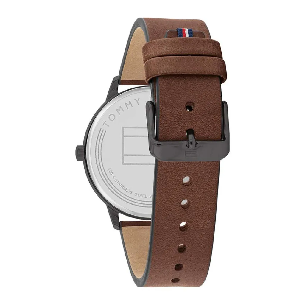 Montre Tommy Hilfiger Hendrix Acier Noir Ronde Quartz 43mm Fond Noir Bracelet Cuir Marron 1791876