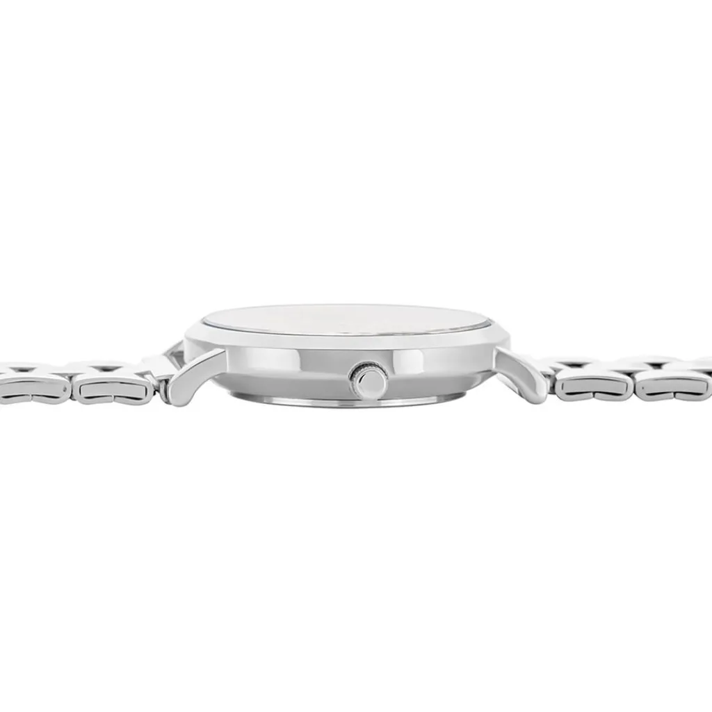 Montre Upp Solena Alliage Argente Ronde Quartz 29mm Fond Blanc Et Paillettes Rock N Roll Bracelet Acier Argente P101104-f