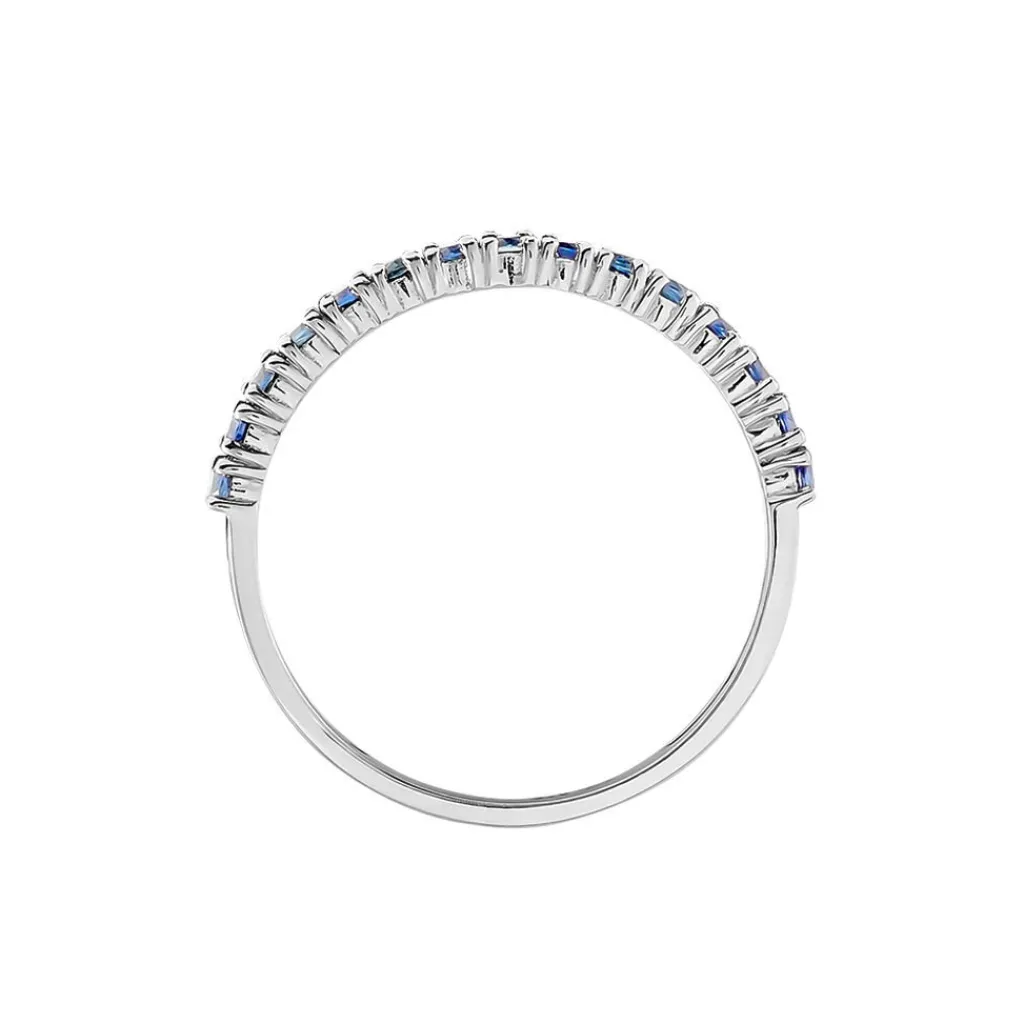 Alliance Or Blanc 750/1000 Saphir Bleu Serti 4 Griffes
