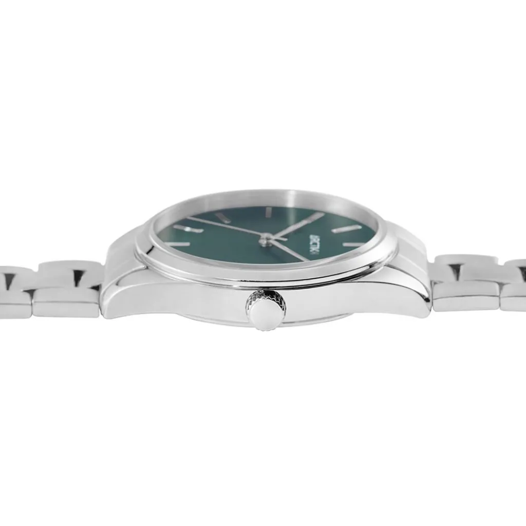 Coffret De Montre Arctik Canopée Alliage Argenté Quartz Ronde 40mm Fond Vert Bracelet Acier Argenté + Bracelet Empierre P101204-b