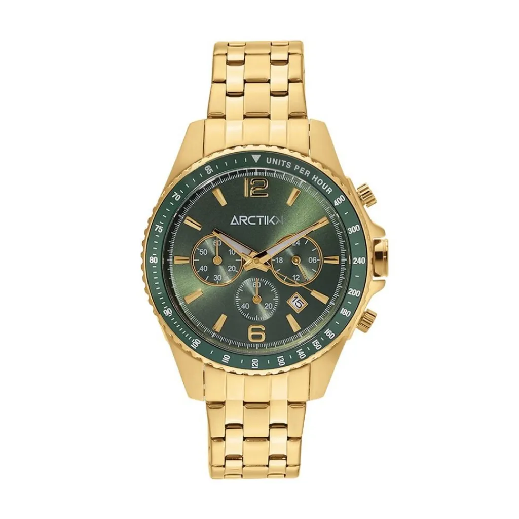 Montre Arctik Acme Acier Doré Ronde Quartz Chronographe 44mm Fond Vert Bracelet Acier Doré Wbb0193-008