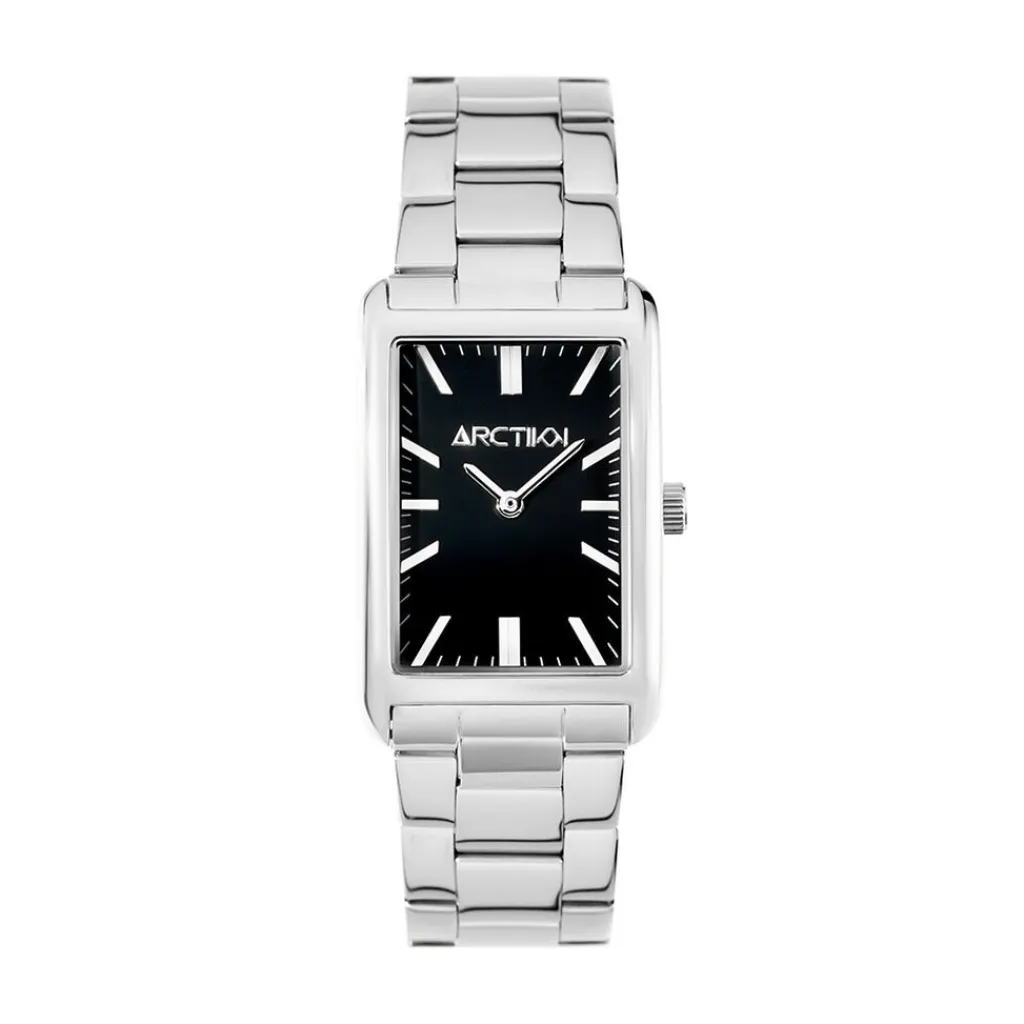 Montre Arctik équinoxe Alliage Argenté Quartz Rectangulaire 26mm Fond Noir Bracelet Acier Argenté Ar.5431ma/01m