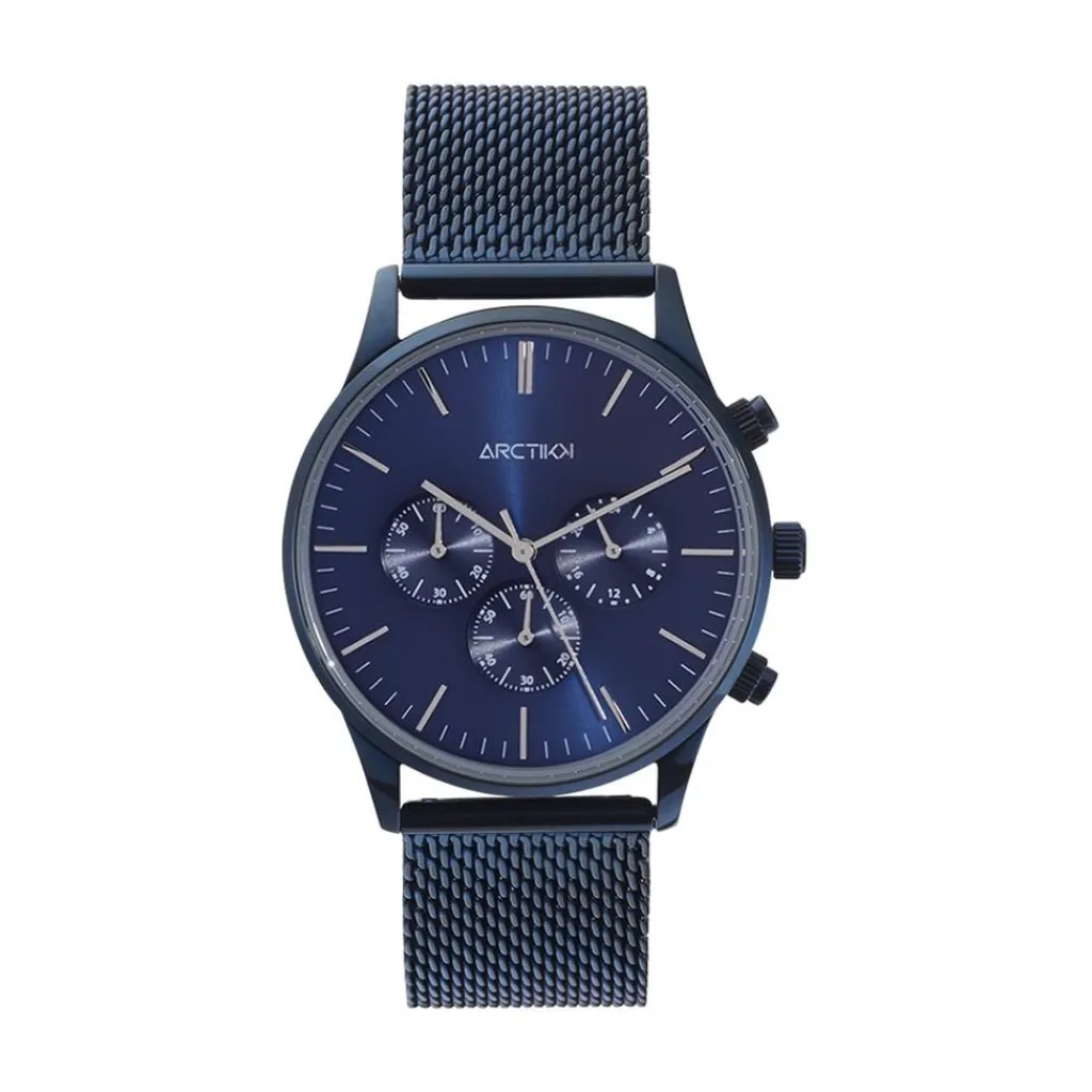 Montre Arctik Escale Acier Bleu Ronde Quartz Chronographe 42mm Fond Bleu Bracelet Milanais Acier Bleu P100989-h