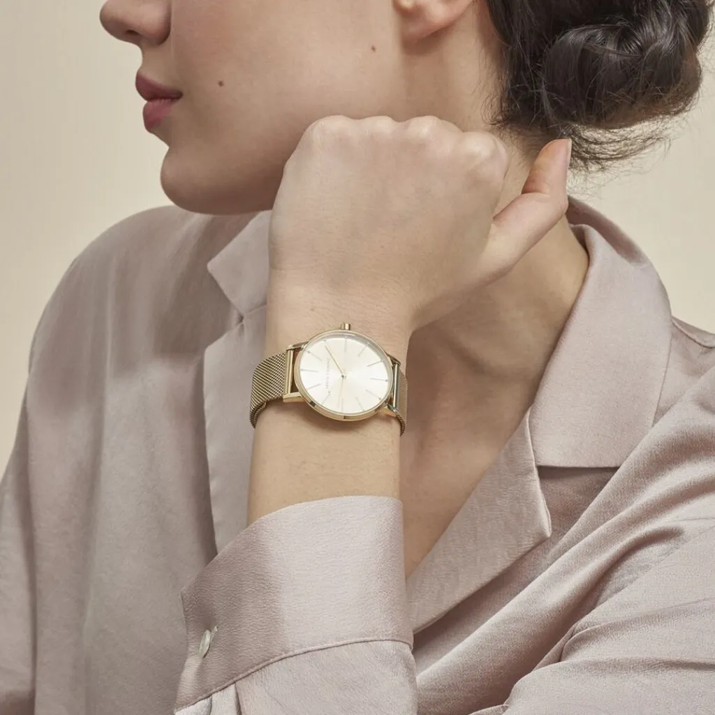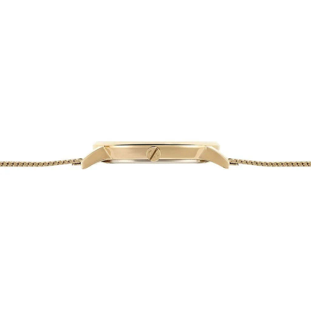 Montre Acier Dore Ronde 36mm Fond Dore Bracelet Acier Dore Poli