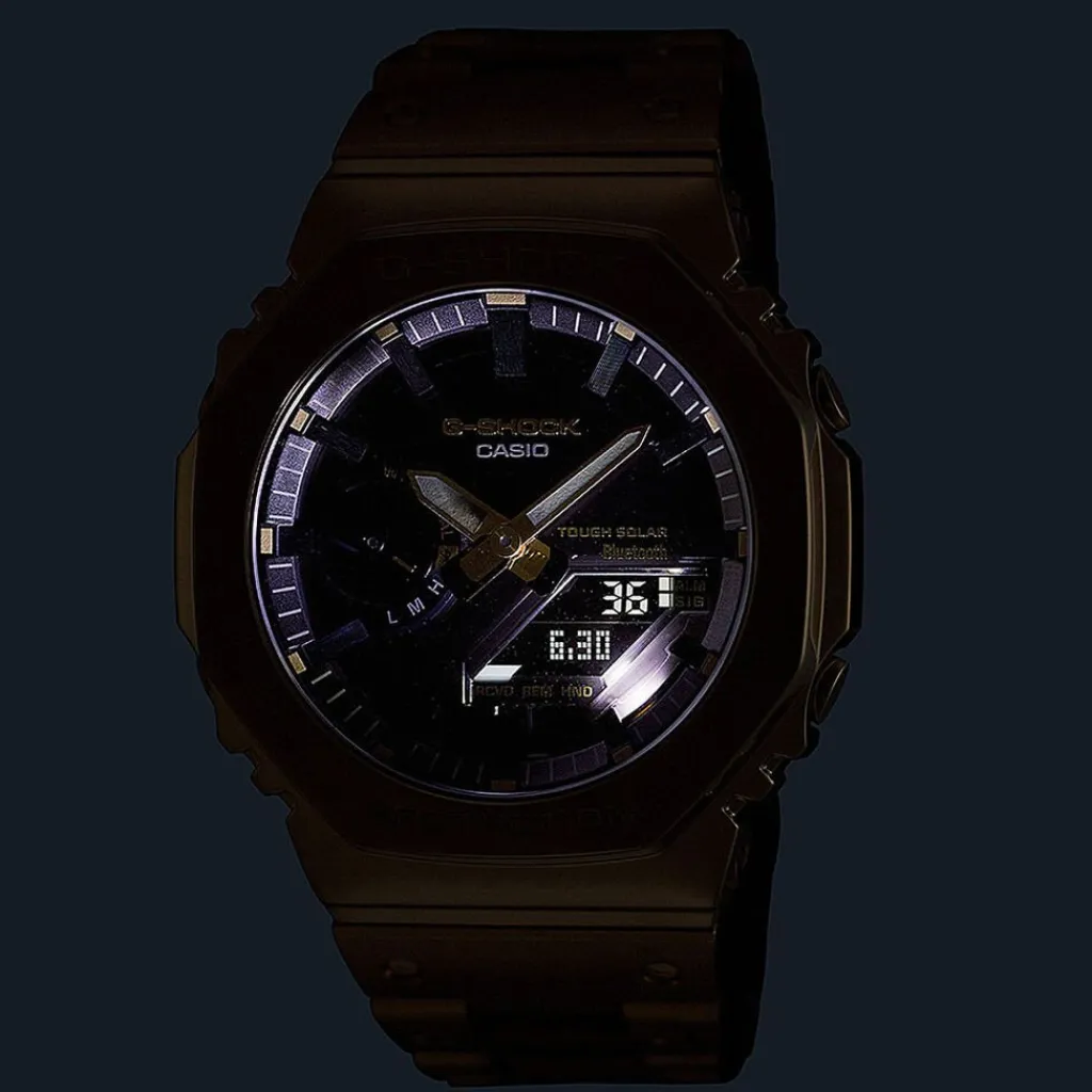 Montre G-shock Premium Classic Acier Doré Ronde Quartz 44.4mm Fond Noir Bracelet Acier Doré Gm-b2100gd-9aer
