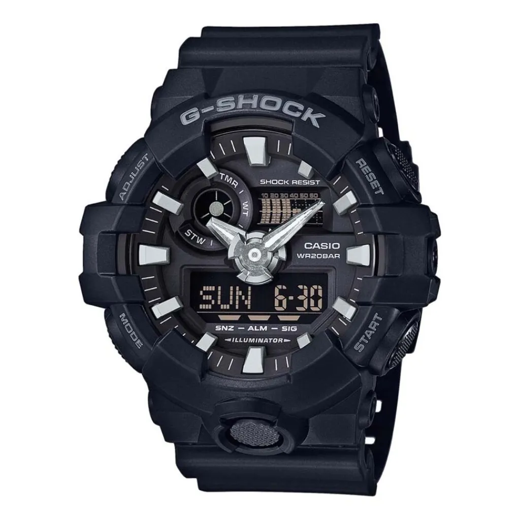 Montre Casio G-shock Résine Noir Ronde Quartz Multifonction 57.5mm Fond Noir Bracelet Résine Noir Ga-700-1ber