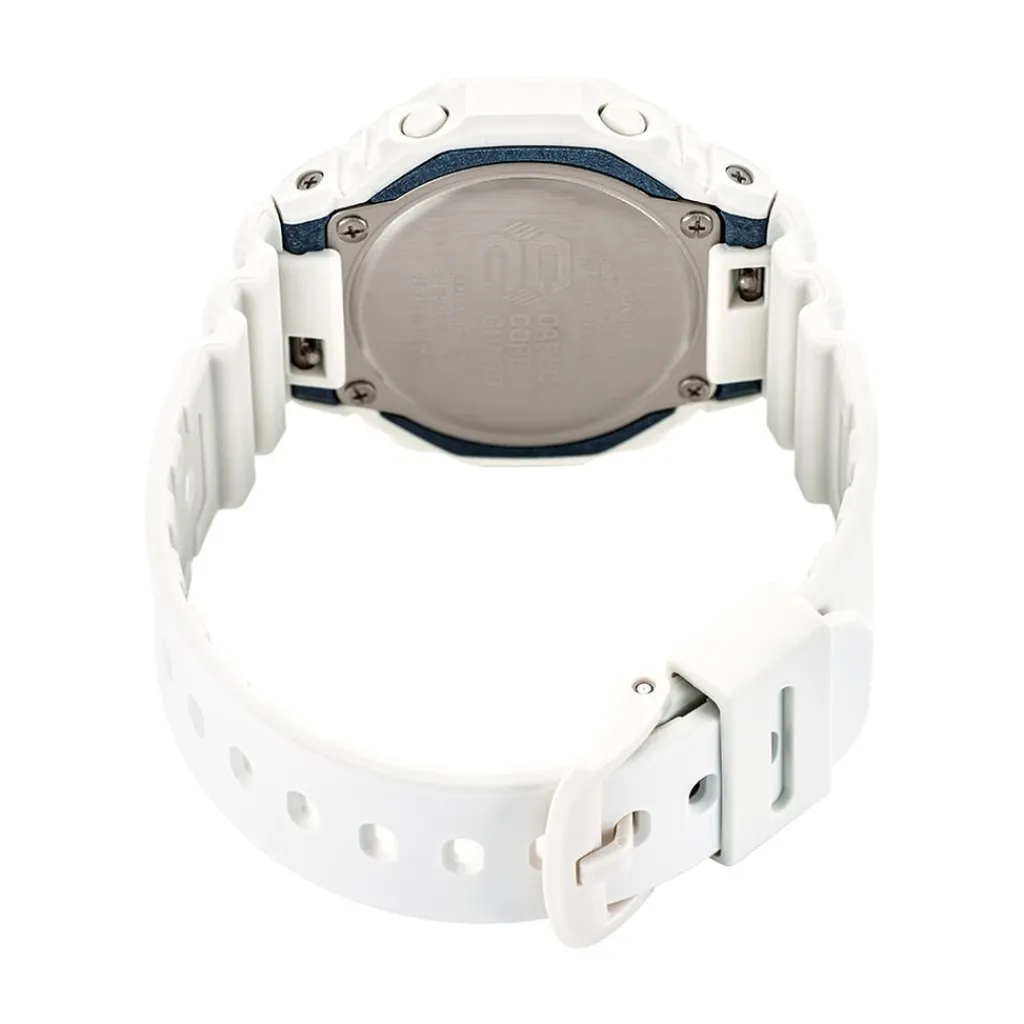 Montre Casio G-shock Anadigit Resine Blanche Ronde Quartz Multifonctions 42.90mm Lunette Blanche Fond Rose Bracelet Resine Blanche Gma-s2100md-7aer