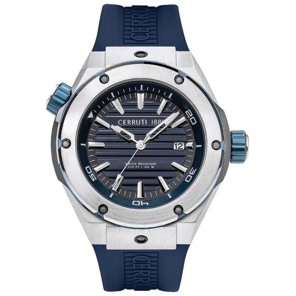 Montre Cerruti Ruscello Acier Gris Ronde Quartz 44mm Fond Bleu Bracelet Caoutchouc Bleu Cra30102