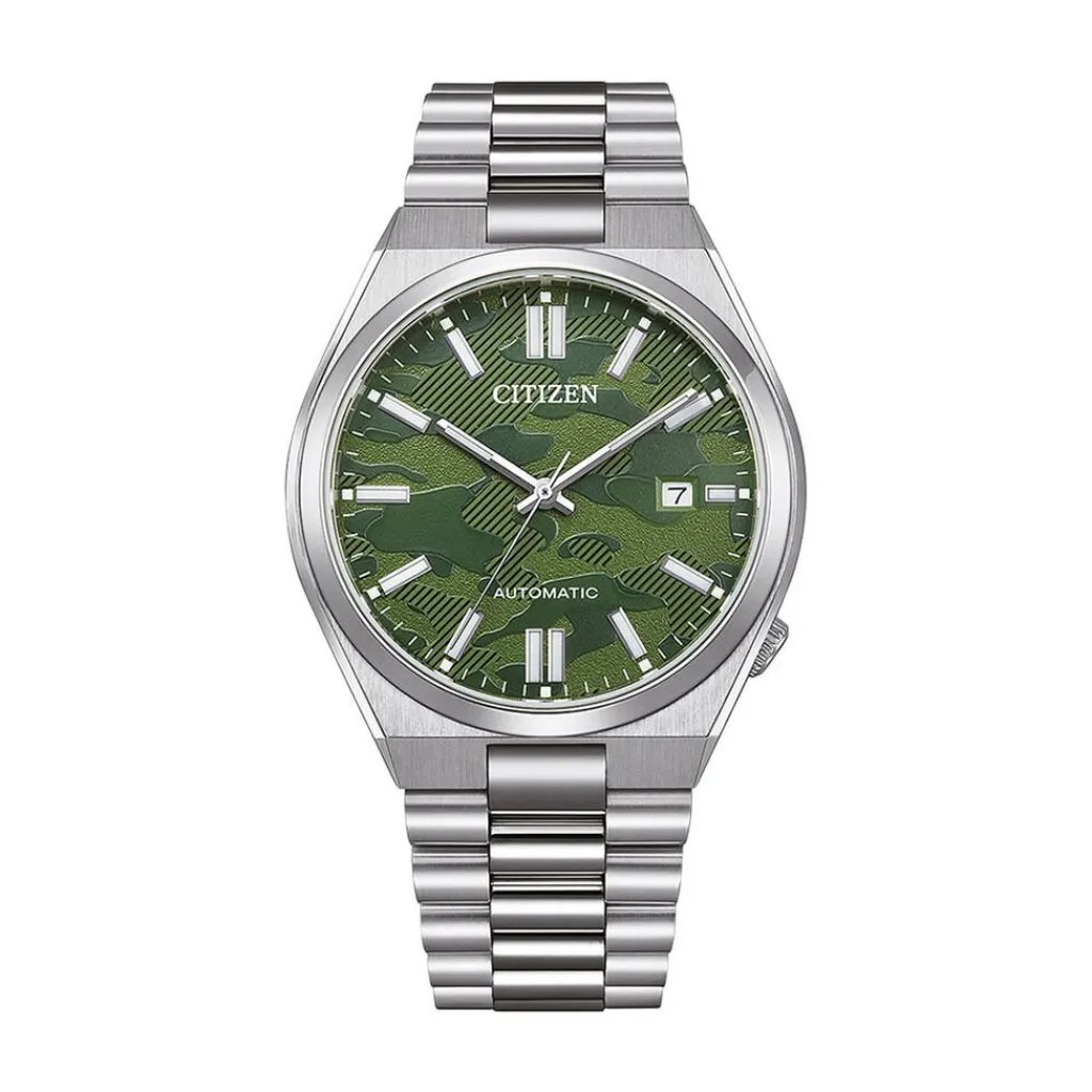 Montre Citizen Tsuyosa Acier Argenté Ronde 40mm Automatique Fond Kaki Militaire Bracelet Acier Argenté Nj0159-86x