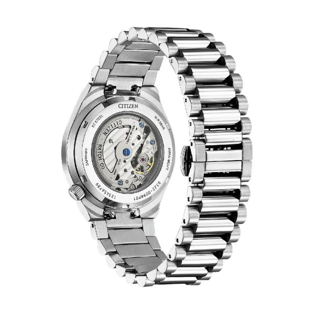 Montre Citizen Tsuyosa Acier Argenté Ronde 40mm Automatique Fond Vert Guilloché Bracelet Acier Argenté Nk5010-51x